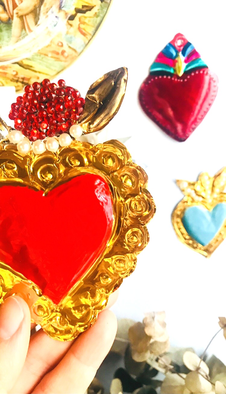 Para el Día de Difuntos, te propongo un taller de milagritos dirigido a toda la familia. Pero… ¿Qué es un milagrito? Es el nombre coloquial de un tipo de exvoto típico de la tradición católica mexicana, que sirve para agradecer un favor a una virgen o un santo o solicitar ayuda divina. Aunque pueden tener diferentes formas, uno de los milagritos más habituales es el que representa un corazón de hojalata envejecida en relieve y pintado de vivos colores.